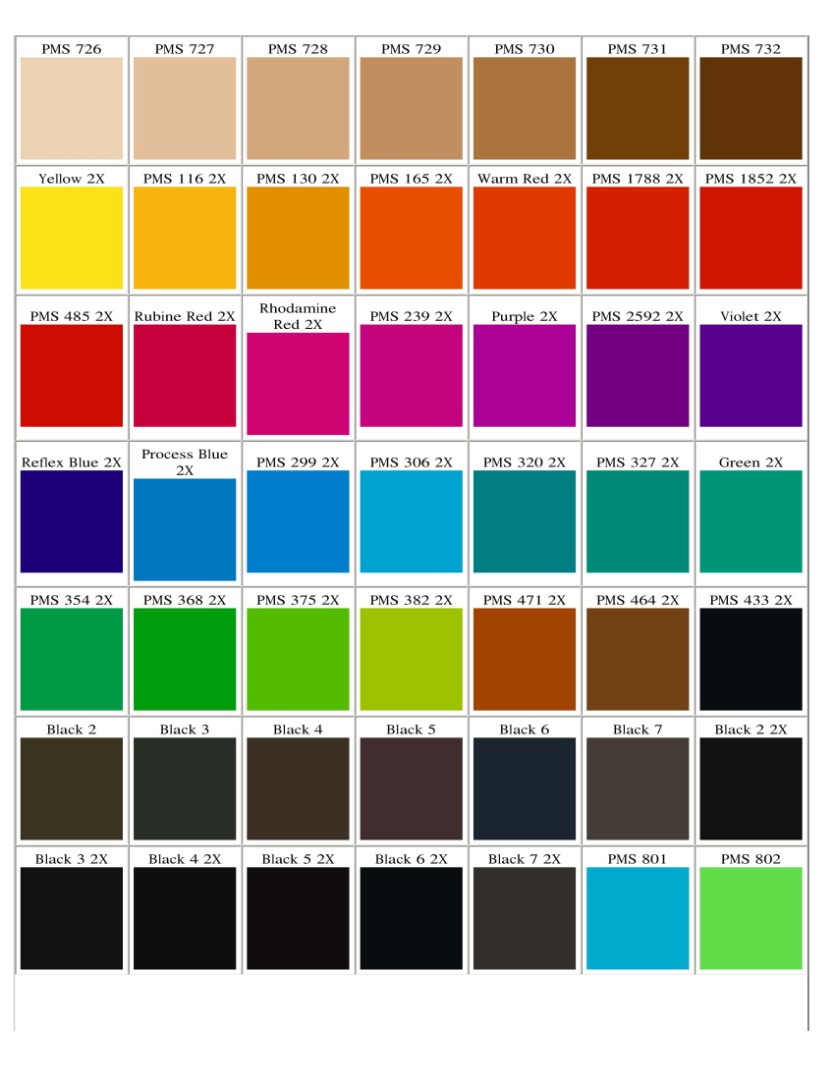 Auf dieser Seite sehen Sie eine Übersicht aller PMS-Farben, auch Pantone Matching System-Farben genannt. Dies ist ein Farbsystem, dass wir mit bestimmten Produkten als Referenz verwenden, so dass sie in den richtigen Farben geliefert werden. Die Pantone-Farben haben jeweils eine eindeutige Nummer. Es ist wichtig zu wissen, dass wir uns nur auf die PMS-Farbkarte beziehen und dass die Farben normalerweise ungefähr sind. Außerdem sind die Farben in Wirklichkeit nicht zu 100% mit den Farben vergleichbar, die Sie auf Ihrem Bildschirm sehen. Denken Sie also daran.